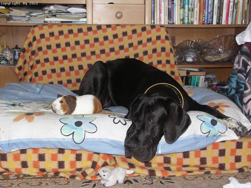 Název snímku:Dizzy a Ája / Naše Dizzča je kamarád i s našimi morčaty, tady s Ájou. :)